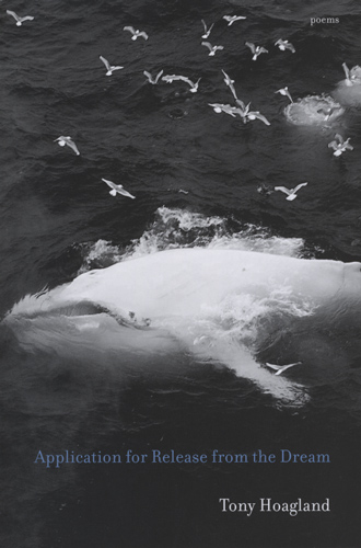Finally, two items worth noting: Don’t miss the tidy little surprise that awaits mid-book with a rework of William Carlos Williams’s “The Red Wheelbarrow,” and the spectacular cover of Application for Release from the Dream. It’s a photo of a rare white humpback whale taken by maritime engineer Dan Fischer while on a boat trip off the coast of Norway.