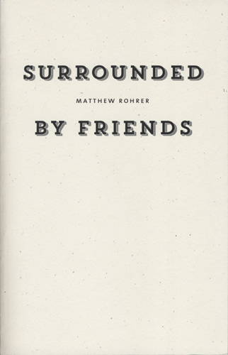 These lines, from which Matthew Rohrer’s new collection takes its title, arrive near the end of the collection in one of Rohrer’s “Translations from Hafiz,” and come as close as any to summarizing the tenor of its poems. In Surrounded by Friends, city life itself acts as a sort of communal inebriant, providing residents with an endless cocktail of experience to partake of, challenging them to remain sober enough to stay meaningfully engaged among competing concerns and seductive distractions. In Rohrer’s poems, seemingly no facet of contemporary experience is given primacy or rejected as being unpoetic. In short, sparingly punctuated lines, the practical concerns and everyday demands, which make up the bulk any life, both hinder and spur on the speaker’s capacity for insight. Rohrer records what matters and what gets in the way of what matters, and in doing so captures the humor and pain that comes from our humble attempts to grapple with the big questions. Whether writing about a photograph exhibit or the Mars rover, a child’s field trip or a father’s hangover, Rohrer creates poems that are funny, tender, and human.