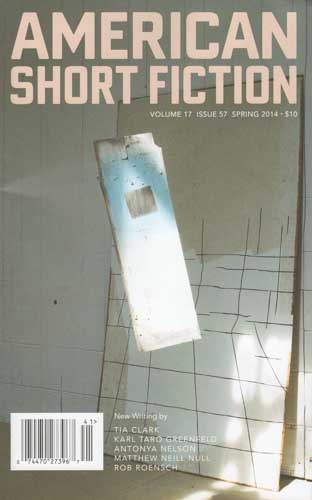 Though this issue of American Short Fiction isn’t overtly themed, Editors Rebecca Markovits and Adeena Reitberger note that they had already selected the stories when they realized “four of the five were about work, the daily grind or the vocation, the answer to what William Carlos Williams called ‘the typical American question’: What do you do?” This does indeed serve as a nice framework for the five pieces of short fiction that make up the issue, work by Tia Clark, Karl Taro Greenfeld, Antonya Nelson, Matthew Neill Null, and Rob Roensch.