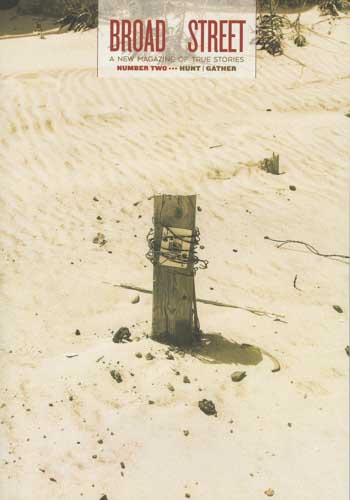 Broad Street has created a viable option for literary end table collections. In this issue, several mediums of storytelling are combined, allowing readers both a visual and multifaceted verbal display. Hunt/Gather was the proposed theme, and I do feel it is somewhat of a challenge to the reader. Loose definitions of the terms seem to have been used by the editors in compiling the pieces presented. By getting a little too hung up on wanting traditional definitions, I feel like I missed some of the simple beauty available in the pages that I can easier see in reflection. Broad Street has created a viable option for literary end table collections. In this issue, several mediums of storytelling are combined, allowing readers both a visual and multifaceted verbal display. Hunt/Gather was the proposed theme, and I do feel it is somewhat of a challenge to the reader. Loose definitions of the terms seem to have been used by the editors in compiling the pieces presented. By getting a little too hung up on wanting traditional definitions, I feel like I missed some of the simple beauty available in the pages that I can easier see in reflection.