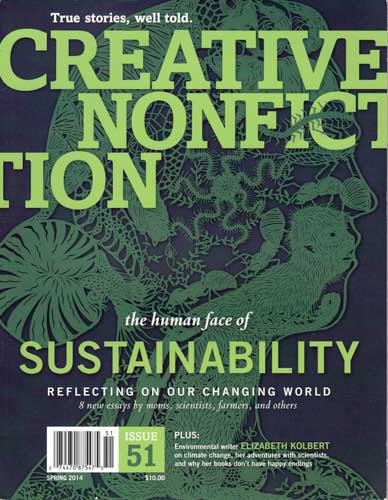 Writers for this issue were asked to tackle the subject of “Human Face of Sustainability.” It was a widely interpreted phrase, as proven by the included interview and ten essays. Individual subjects range from cancer-causing carcinogens and their effects on both children and our ecosystem (“Acts of Courage” by Mary Heather Noble), to a bicyclist’s perspective on individual activism (“Trapped” by Sarah Gilbert), to how one of the poorest cities in America is working on changing for the better (“Iyabo is Yoruba for ‘The Mother Has Returned’” by Amy Hassinger).