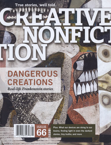 Due to the 1931 Frankenstein film, the popular conception of Frankenstein is the monster. But really, Dr. Frankenstein is the creator. Dedicating this issue to Frankenstein stories, Creative Nonfiction forces readers to reimagine our conceptions of horror and monstrosity, because the antidote to becoming inhuman and monstrous is to see the monsters in our lives as lessons toward empathy and kindness.