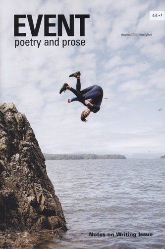 The Spring/Summer issue of EVENT is a particularly exciting read because it is the “Notes on Writing” issue. Not only does the journal provide a spectrum of poetry, fiction, nonfiction, and reviews, but it also provides reflective commentary on the creative writing process that is valuable for all but the most experienced writers. The Spring/Summer issue of EVENT is a particularly exciting read because it is the “Notes on Writing” issue. Not only does the journal provide a spectrum of poetry, fiction, nonfiction, and reviews, but it also provides reflective commentary on the creative writing process that is valuable for all but the most experienced writers.