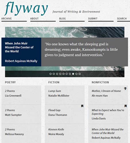 Home to Iowa State University, Flyway aims to publish work that “that explores the many complicated facets of the word environment—at once rural, urban, and suburban—and its social and political implications.” While environment may be a theme of the journal in general, I think it’s a pretty loose interpretation, meaning that almost any type of story could fit. But that isn’t to say that any piece of work could be accepted; the work presented here is polished, and is worth reading. Home to Iowa State University, Flyway aims to publish work that “that explores the many complicated facets of the word environment—at once rural, urban, and suburban—and its social and political implications.”