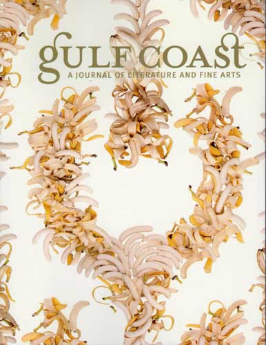 This issue of Gulf Coast is a treat for eye, ear, heart, and mind. Fiction is represented by four short stories. Pamela Ryder offers “There’s Nothing Here You’d Want,” a Hemingwayesque evocation of the responsibilities of a daughter whose father slowly fails and then dies. The bad faith of a series of caretakers, the poignancy of the scene in which she talks with her father about his funeral, the anticlimax of cleaning out the empty apartment—each receives a painterly treatment, full of detail, with pain leaking out from between the declarative sentences. The story sticks in memory.