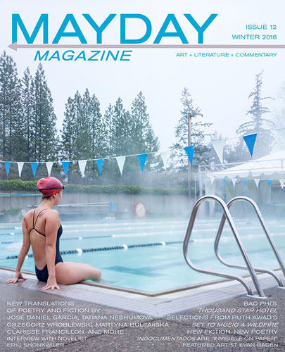I started reading the latest issue of MAYDAY on May 1, of all days, so as I clicked through the poetry, prose, translations, and art in the Winter 2018 issue, my mind kept going back and forth between distress signals and a day of springtime celebration. While the pieces I gravitated to seemed to have more of that distressed feeling about them, one can also find moments of hope and celebration.