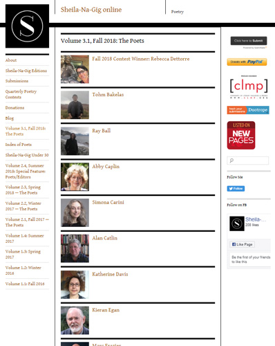 Sheila-Na-Gig Online Volume 3 Number 1, Fall 2018 reviewed by Katy Haas