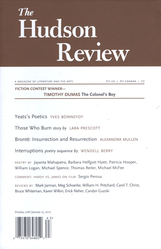 Since 1948, The Hudson Review has served as a platform for emerging authors and poets in a wide variety of genres, appealing to many aspects of American literature and culture. The Autumn 2016 issue shares poetry, fiction, essays, review, chronicles, and comments, each one truly unique and showcasing a wide variety of talents.